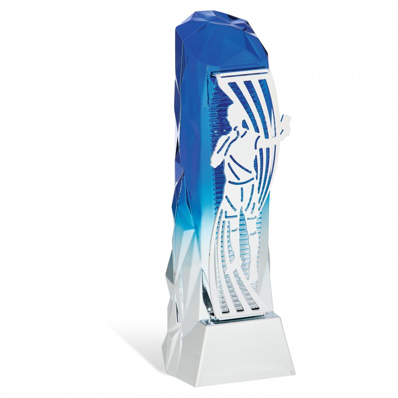 Coppa in PLASTICA finitura metalizzata, soggetto calcio in metallo, PORTIERE. Targhetta sempre compresa.