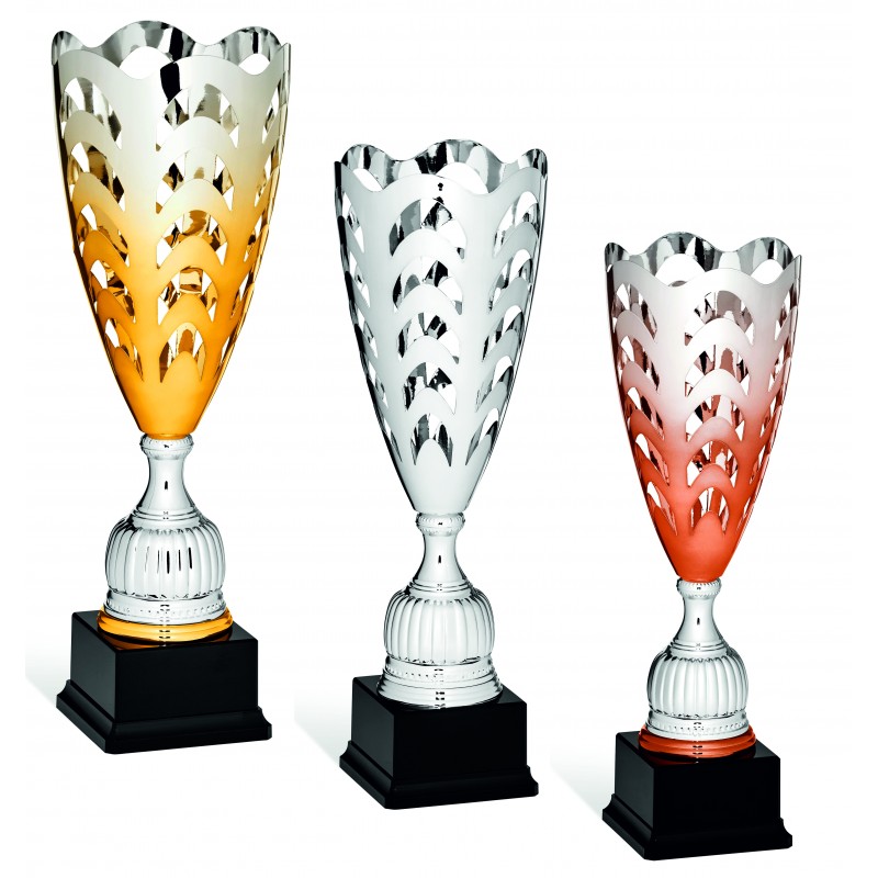 Coppa con tazza lavorazione laser in metallo, nelle tre colorazioni da podio. Targhetta SEMPRE compresa.