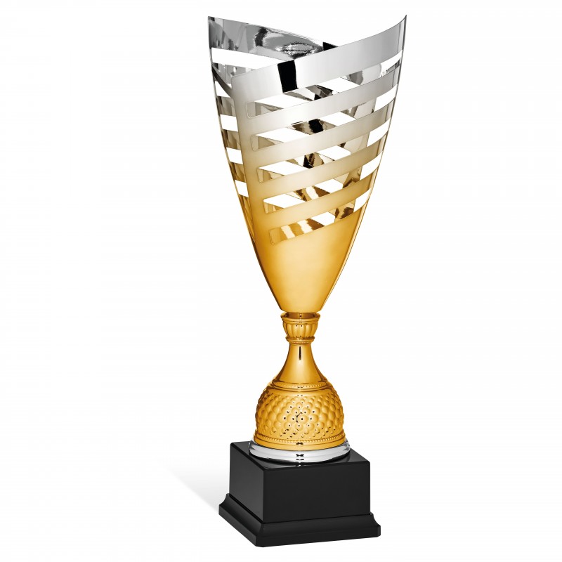 Coppa con tazza sfumatura dorata. Targhetta sempre compresa.
