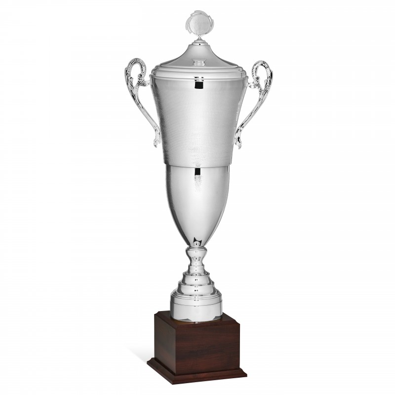 Coppa con tazza in metallo, possibilità di personalizzazione del puntale sul coperchio . Targhetta sempre compresa.
