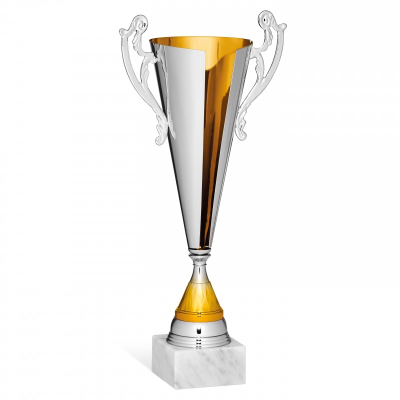 Coppa con tazza in metallo e manici. Targhetta SEMPRE compresa.