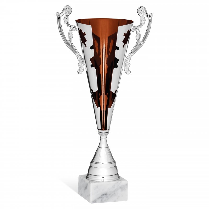 Coppa con tazza in metallo lavorazione a laser e manici. Targhetta SEMPRE compresa.