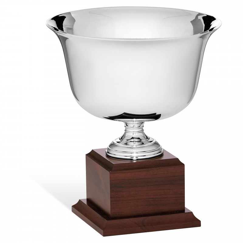 Coppa con tazza in metallo, linea insalatiera" base legno. Targhetta sempre compresa.