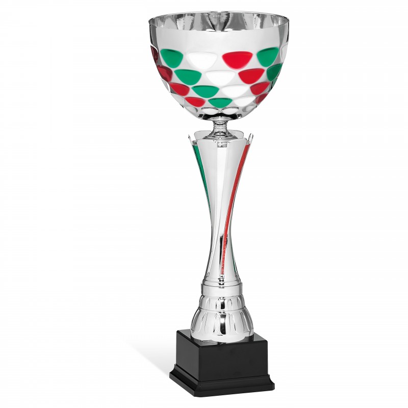 Coppa con tazza metallo particolare tricolore. Targhetta SEMPRE compresa.