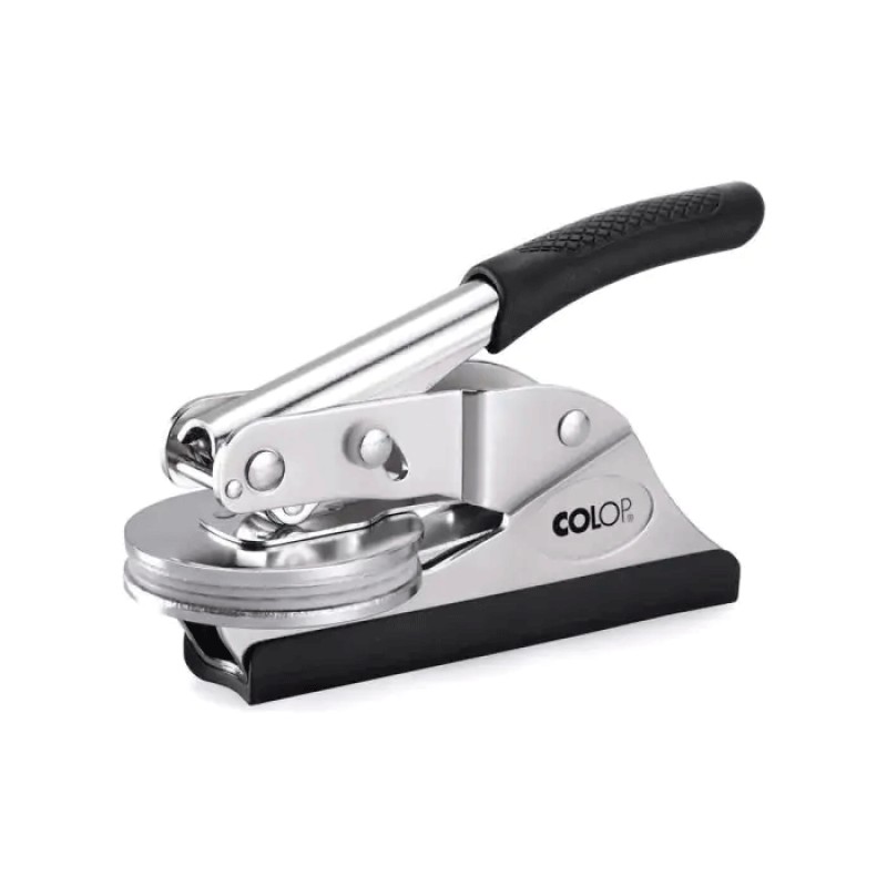 Pressa manuale in metallo, per timbri a secco. Dimensione di stampa diametro 40 mm e 50 mm.